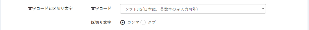 CSVファイルの「文字コード」と「区切り文字」を設定します。